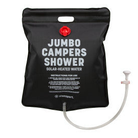 There s no reason to give up the pleasure of a hot shower even if you re at a remote campsite. This solar shower absorbs heat from the sun creating an ample 5 gallons of hot water - enough for up to 4 showers. A shower-head and flow-control hose regulate water pressure for showering washing dishes and a bevy of other outdoor clean-up tasks.