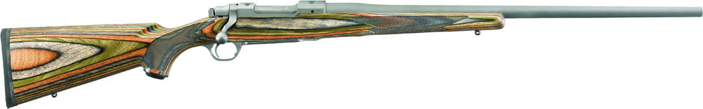 Green Mountain Laminate Stock. LC6 trigger for smooth, crisp trigger pull. Non-rotating, Mauser-type controlled-feed extractor. Fixed blade-type ejector. New red rubber recoil pad. Hinged steel floor plate, with Ruger logo. Patented integral scope rings that attach directly to the precision machined receiver. Easily accessible three-position safety. Also includes: rugged one-piece, stainless steel bolt; studs for mounting sling swivels.