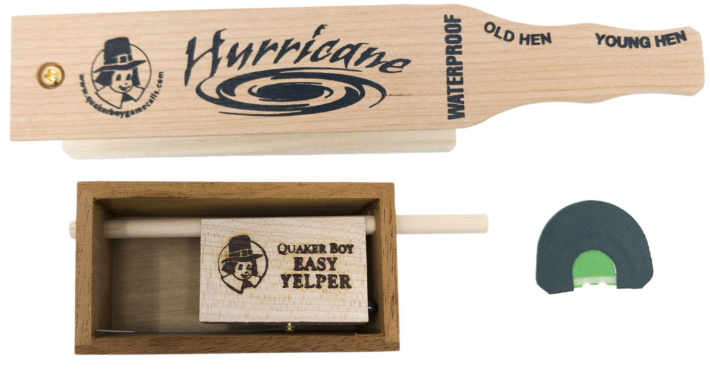 - The Waterproof Hurricane - It’s waterproof! The Ergo-Grip paddle handle is designed so you can sound like an Old Hen or Young Hen on the right or left side of the call. This call never needs chalk or sanding.