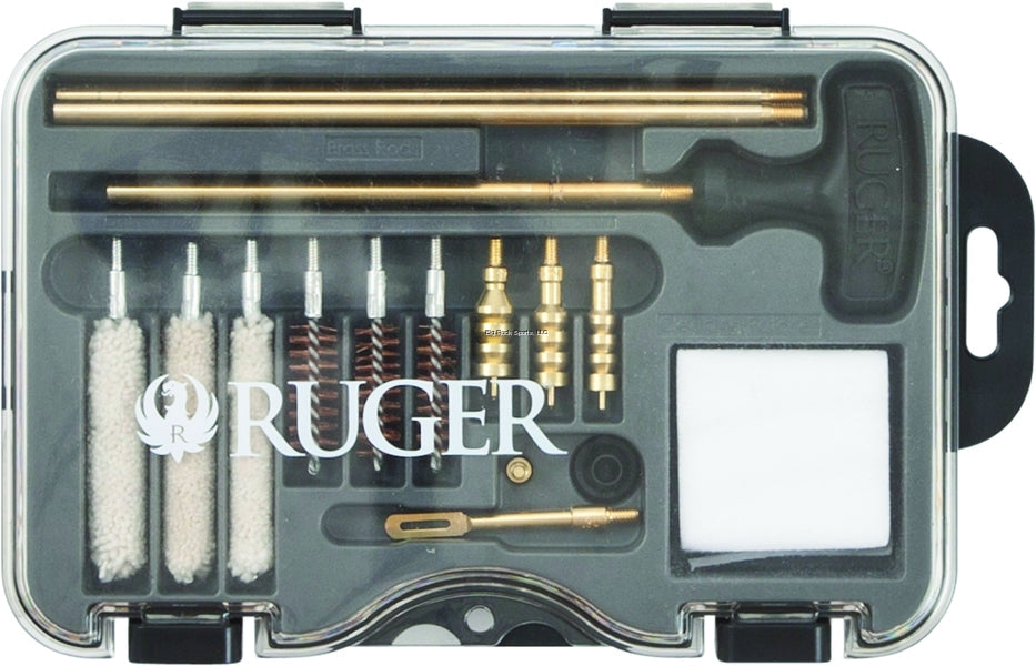 The Ruger® Universal Handgun Cleaning Kit is a high-quality handgun cleaning kit packed in an organized toolbox with a clear lid and secure latches. Designed to work for the most popular handgun calibers including .380 ACP, .357 Magnum, .38 Special, 9mm, 10mm, .40 caliber, .44 Magnum, and .45 ACP. Kit includes the following: Heavy-duty 4-piece brass cleaning rod, 3 brass cleaning jags, a brass slotted tip, and adapter, 3 bronze bore brushes, 3 cotton bore swabs, 20 cotton cleaning patches, a muzzle guard, removable organizational tray, toolbox with clear lid and solid latches that will stay secure, even after many uses.