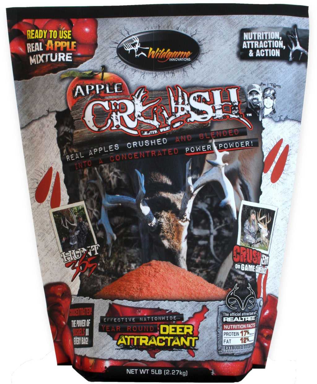 Deer go wild for the sweet aroma and delicious taste of ripe, juicy apples, and now Wildgame Innovations is bringing the orchard to you with Apple Crushed. We take fresh, all-natural ripe apples then crush ’em with a blend of nutrient-filled proteins and fats. The end result is an irresistible deer feed that will grow monster trophy bucks. Airborne Technology distributes 600% more scent molecules than ordinary feed grains to attract deer with an apple scent over crazy long distances at super-sonic speeds. Unleash a whole bushel of attractant power with Apple Crushed attractant.