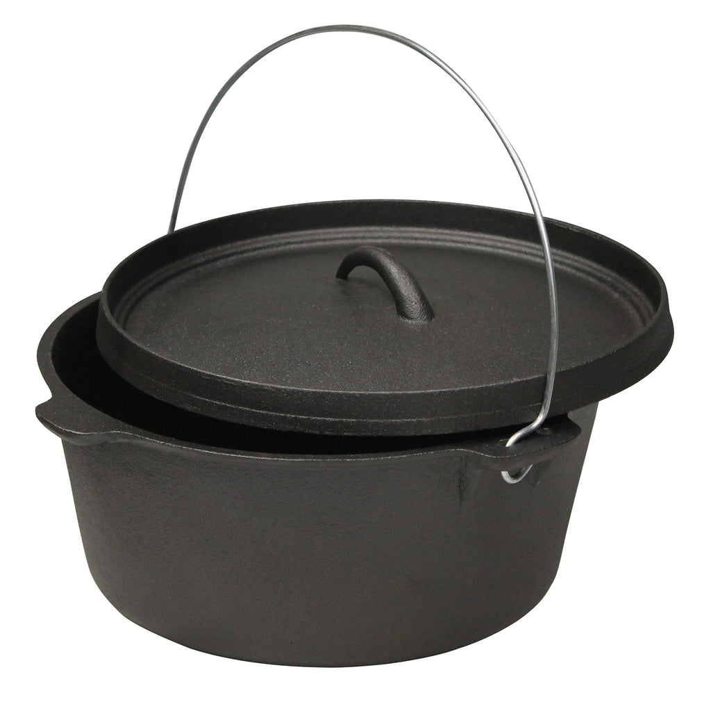 - Heavyweight cast iron with long lasting durability (pot and lid combined weigh 19 1/2 pounds)